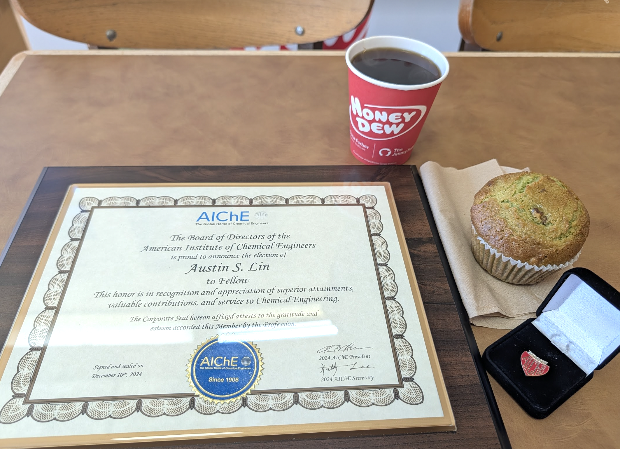 It was a huge honor to be notified of my election as a Fellow of the American Institute of Chemical Engineers (AIChE).